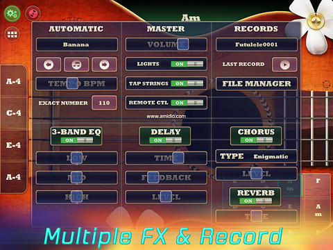 Il motore audio dell’applicazione è stato strutturato ed ideato per rendere al meglio la vostra musica ed i suoni dello strumento. Proprio per le sue caratteristiche, l’applicazione ha attirato a se tanta attenzione dal giorno del suo annuncio (primavera 2012) anche grazie alla possibilità di combinare due dispositivi iOS (iPad ed iPhone) utilizzando un particolarissimo case a forma di chitarra.