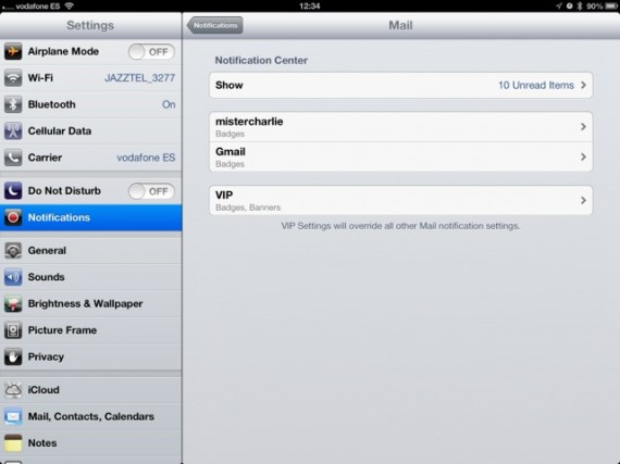 - Dalle impostazioni di Mail è possibile impostare vari tipi di alert per i singoli contatti o i singoli account e-mail. E’ anche possibile bloccare le notifiche per determinati account (quindi niente suoni o avvisi) o abilitarle per altri o per singoli utenti. Il tutto è strettamente collegato alla funzione VIPs che consente di gestire i contatti e-mail preferiti.