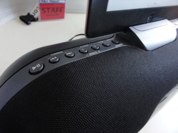 La radiosveglia Muse M158IP è un po’ più grande della versione di cui vi abbiamo parlato su iPhoneItalia. L’iPad è anche più grande di un iPhone e richiede, quindi, un supporto più stabile. La radiosveglia trova spazio su un semplicissimo comodino da notte, ma può essere utilizzata in qualsiasi zona della vostra abitazione. Infatti, grazie al design giovane ed innovativo non da certamente l’impressione di una semplice radiosveglia: radio, riproduzione audio da iPad, iPhone e iPod, può essere utilizzata come speaker durante la visione di un film (logicamente solo in modalità portrait se collegata al dock) oppure per guardare la TV.