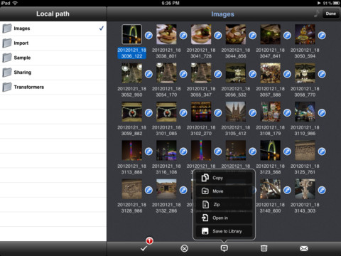 Oltre a quanto appena accennato, GoodReader potrà essere sincronizzato con diverse tipologie di server in remoto, come ad esempio i servizi offerti da iDisk, Dropbox, SugarSync e qualsiasi server WebDAV, AFP, FTP e SFTP. All’interno dell’app troveremo un vero e propri file manager che potrà essere utilizzato per interagire con i diversi file zippandoli, spacchettandoli ed inviandoli via email, come anche la possibilità di trasferirli sfruttando una tra le modalità incluse.