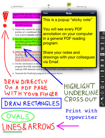 GoodReader è un’applicazione conosciuta sicuramente da chi utilizza il proprio iDevice per gestire documenti in formato PDF e TXT, anche di grandi dimensioni, ed è caratterizzato da una serie di utilissime funzionalità per modificare e consultare documenti. L’applicazione, tuttavia, non è specializzata unicamente in documenti PDF e TXT, ma supporta anche manuali, libri, riviste e renderings di oltre 100MB. Tra le funzionalità offerte troviamo la possibilità di aggiungere note, sottolineare porzioni del testo contenuti nei vari documenti, inserire frecce e addirittura disegnare a mano libera sfruttando il display touchscreen del nostro dispositivo.