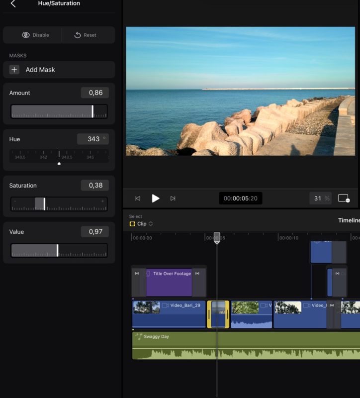 Piacevole è la conversione automatica delle clip SDR in HDR e viceversa in base alle esigenze di progetto, così come è incredibile lavorare su file 4K HDR sul display di iPad Pro 12.9″, uno dei migliori in circolazione. Tuttavia, le correzioni disponibili come preset sono ancora insufficienti a compensare – come vedremo dopo – la mancanza delle LUT personalizzate.