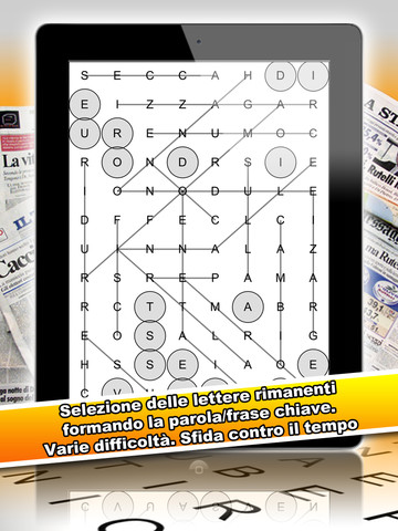 Un gioco su App Store che proporrà di svolgere il gioco del crucipuzzle direttamente dall’iDevice offrendo inoltre la possibilità di ricercare, come avviene con la versione originale cartacea, di trovare le parole chiave. Altra importante caratteristica risiede nella possibilità di giocare a crucipizzle inediti e sempre nuovi, quindi senza un database prestabilito, in quanto l’applicazione andrà a generare nuovi puzzle in base alle ultime notizie dei maggiori giornali del mondo. Ogni giorno ci saranno nuove notizie con cui verranno generati nuovi puzzle sempre attuali, e mentre staremo giocando al titolo, inconsapevolmente rimarremo al corrente degli ultimi avvenimenti e curiosità. Se dovessimo infine essere curiosi, potremo leggere la notizia e/o condividerla con un amico. Applicazione universale.
